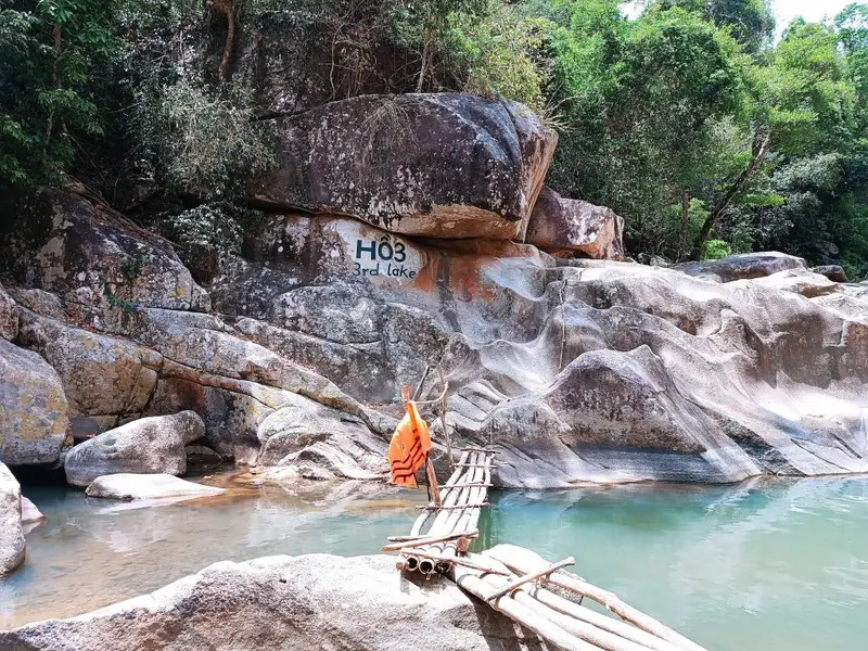 Đây là hồ dễ tiếp cận nhất. Vào mùa mưa, thác nước đổ xuống trắng xóa cực kỳ hùng vĩ. Phần lớn du khách sẽ dừng chân tại đây để tắm suối và tổ chức ăn uống nhẹ trên các mỏm đá.